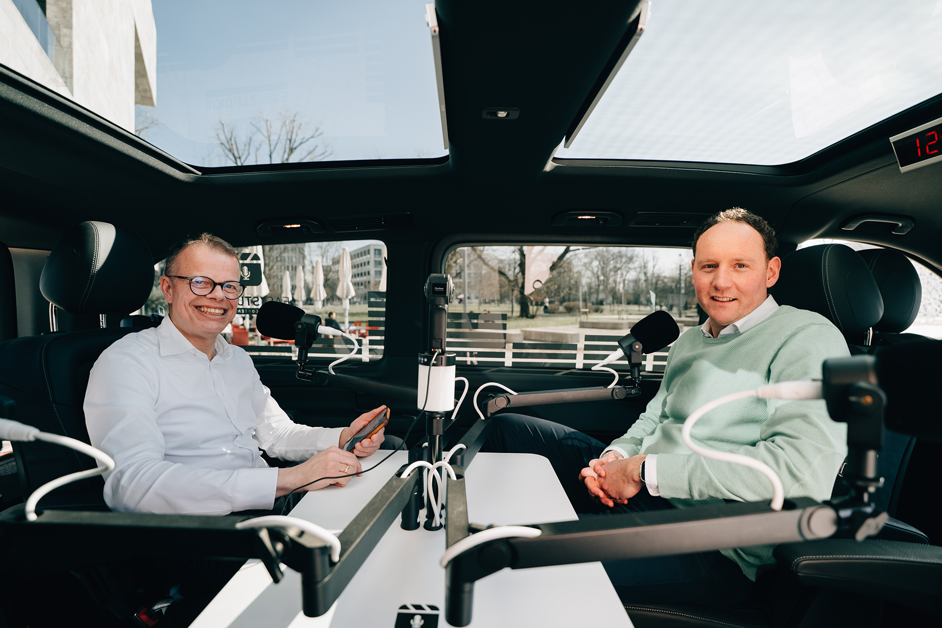 Alle mal einsteigen ins erste mobile, vollelektrische Podcast- und Videocaststudio Deutschlands! Mit modernster Technik und viel Komfort kannst Du jetzt Deine Talkgäste in einem Mercedes-Benz EQV begrüßen und sparst Dir die Raumsuche sowie den Auf- und Abbau.